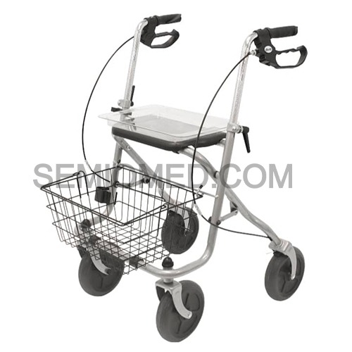 Le rollator pliant tout confort et modulable : siège, panier, plateau, porte-canne et système de freinage simple et efficace.