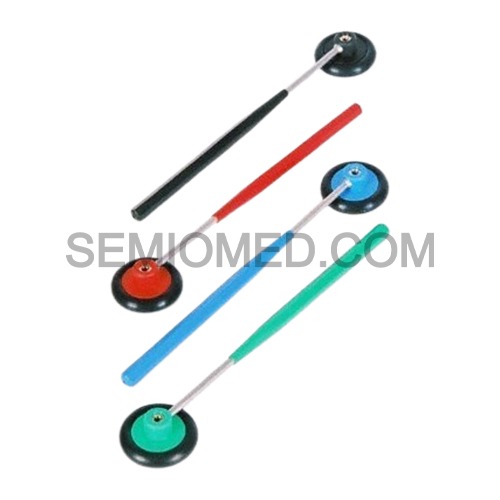 Ce marteau est utilisé pour tester la sensibilité cutanée et les réflexes ostéotendineux lors d’examens neurologiques. La percussion doit être brève et franche et réalisée sur un muscle relâché. La réaction du patient doit consister en une contraction involontaire unique.
